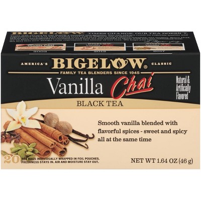 Taste profile bold tea. Get nutrition information for bigelow items and over 190 000 other foods including over 3 000 brands. Bigelow cinnamon stick black tea prepared w water. 28 tea bags per box.